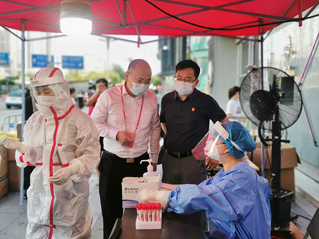 活動現場,中裝建設黨支部還組織黨員志愿者先鋒隊,堅定投身疫情防控第一線和最前沿,積極開展核酸檢測、秩序維護等工作。