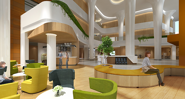 合肥離子醫院中心是合肥綜合性國家科學中心七大創新平臺之一,位于合肥高新區燕子河路與長寧大道交口,總建筑面積約3.3萬平方米。在本案設計中,中裝建設以患者為中心,以“水”為主題,通過曲線空間帶來舒緩的氛圍,營造一所集家具、庭園、社區于一體的且兼顧私密性的健康中心。此外,公司通過運用BIM技術,使抽象化的施工更加簡單化、更加直觀化、更加高效。